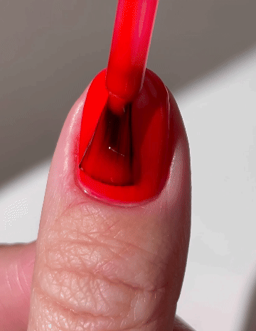 - Make sure the first coat of gel polish is VERY thin (with barely any gel in the brush). Do NOT lob on a bunch of polish the way you would do with regular nail polish. This is EXTREMELY IMPORTANT to ensure that the base layer is not too thick, which will affect the gel's lasting power. You can remove excess gel polish from the brush (before applying) by wiping it along the opening of the bottle. This will help in ensuring a VERY thin first layer.
