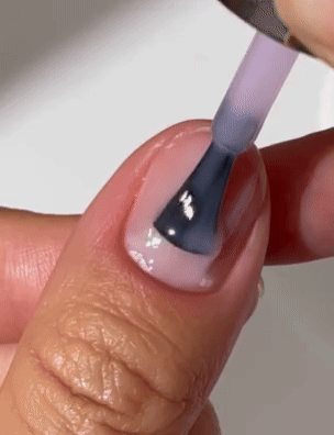 Work from the middle of the nail plate to the free edges. Repeat until it covers the whole nail like a base coat.