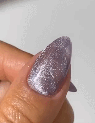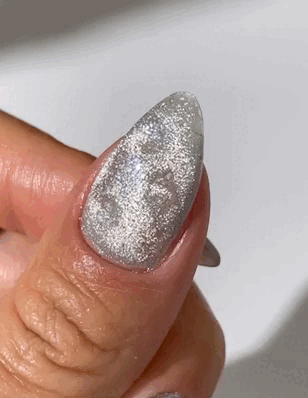 This special polish consists of a magnetic gel that contains metallic particles. When exposed to a magnet before curing, the particles flow together to create a multi-dimensional, shimmering effect like a cat's eye, with a lovely velvet texture.