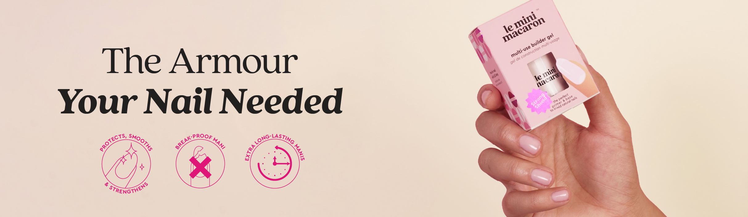 Application is the same as LMM 1-step gel polish. Cure for 60 seconds under the mini macaron LED lamp (or 60 seconds under the maxi macaron LED lamp).